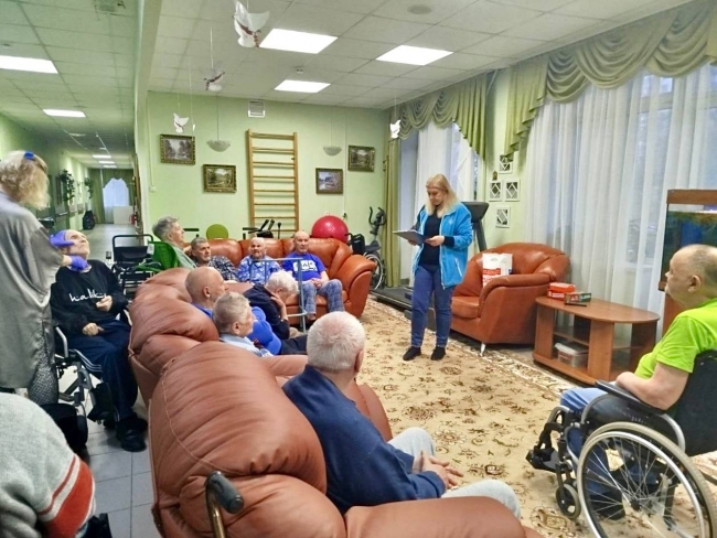 Сегодняшняя встреча в Геронтологическом центре «Восточный» посвящена арктической экспедиции на пароходе «Челюскин», прошедшей в 1933 году. История о героях, оказавшихся на льдине в суровые зимние месяцы, помогает ощутить связь с прошлым и учит ценить важность взаимопомощи. Татьяна Ивановна, одна из участниц, поделилась своими мыслями: «Если бы не этот подвиг наших героев, не было бы прогресса, новых знаний и открытий. Это важно помнить и передавать дальше». Библиотекарь и ведущая мероприятия Ольга Новикова отметила: «Мы замечаем, что истории подвигов советского народа находят отклик в сердцах жителей. Они с откровенной заинтересованностью реагируют, активно включаются в обсуждение, делятся своими мыслями и чувствами. Такое взаимодействие свидетельствует о том, что подобные встречи не только обогащают знания, но и оказывают положительный терапевтический эффект, помогая укреплять эмоциональную устойчивость и создавать ощущение поддержки и единства». Подобные мероприятия - часть реабилитационной работы, открывающей пространство для обмена мыслями и эмоциями. В нашем Центре мы понимаем, что активное участие в познавательных мероприятиях — шаг к сохранению социального и психологического благополучия проживающих.