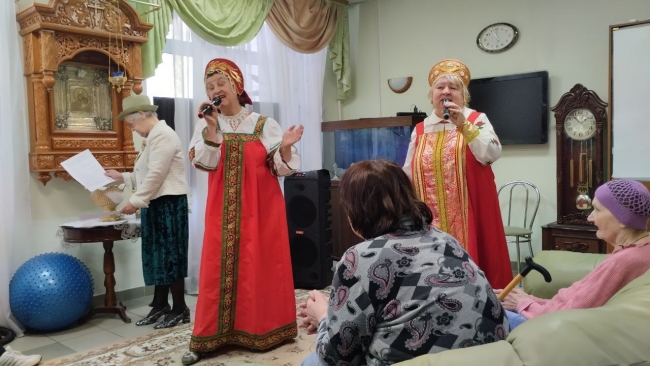 Душевная Масленица: «Серебряный возраст» подарил праздник жителям Геронтологического центра «Восточный». В разгар масленичной недели, когда воздух, кажется, наполнен ароматом блинов и предчувствием весны, особенно важно дарить тепло тем, кто в нем нуждается больше всего. Волонтёры волонтёрского центра «Серебряный возраст» совершили традиционный визит в Геронтологический центр «Восточный», подготовив для проживающих яркую концертную программу - «Весёлая Масленица». Встреча получилась по-настоящему праздничной. Артисты порадовали проживающих не только задорным настроением, но и красочными костюмами, которые сразу погрузили зрителей в атмосферу старинного русского гулянья. Прозвучали народные песни, частушки, стихи и весенние заклички. Зрители с интересом вслушивались в знакомые мотивы, многие подпевали и отбивали такт в ладоши. Как отметил культорганизатор Центра Владимир Савенко, такие встречи стали для учреждения доброй традицией: «Волонтёры волонтёрского центра "Серебряный возраст" являются давними друзьями наших ветеранов. Ветераны всегда рады душевным песням и тёплому общению. Сегодняшний концерт — лучшее подтверждение тому, что настоящая дружба не знает возраста и дарит радость обеим сторонам». С праздником, друзья! Всем весёлой Масленицы!